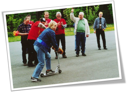 Weitere Aufgaben begleiteten uns auf unserer Rallye und endeten nachmittags an einem Hindernisparcour auf dem Hotelvorplatz. Gar nicht so einfach sich mit Box-Handschuhen auf einem Kinderroller fortzubewegen. Leider gab es hier auch ein paar Blessuren, die aber zwischenzeitlich alle wieder ausgeheilt sind.